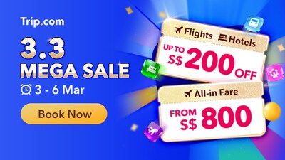 SINGAPORE, Feb. 27, 2026 /PRNewswire/ -- Trip.com has today unveiled the 3.3 Mega Sale for the school holidays and upcoming long weekends, happening from 3–6 March.