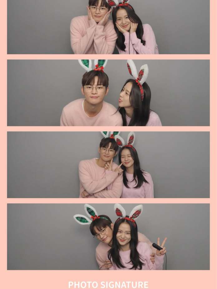 In the pictures, Seo In-guk and Jisoo pose together inside a photo booth, striking playful and cute expressions for the camera. Both stars appear dressed in matching pink outfits, adding to the romantic vibe of the photos. The four cut photo style, popular in Korea, gave the images a casual and intimate feel that fans immediately loved.