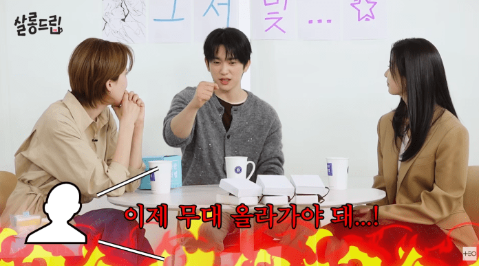 Host Jang Do-yeon brought up a famous rumor that the members once fought in a broadcast station bathroom but still went on stage as if nothing had happened. Jinyoung laughed and confirmed the story.