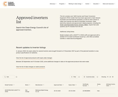 SYDNEY, March 30, 2026 /PRNewswire/ -- StarCharge Energy Oceania today announced that its Halo 7.4kW V2G charger, model AD20074EU1923, has secured listing with the Clean Energy Council (CEC) in Australia, marking an important step toward broader deployment of vehicle-to-grid (V2G) technology in the local market.